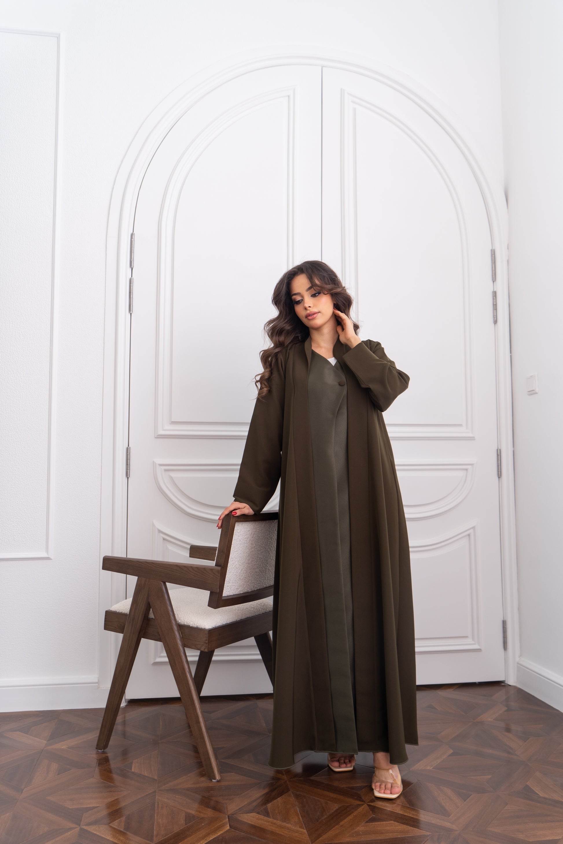 A timeless two piece design combining fluid crepe and soft satin, offering effortless movement and a polished, elevated look.